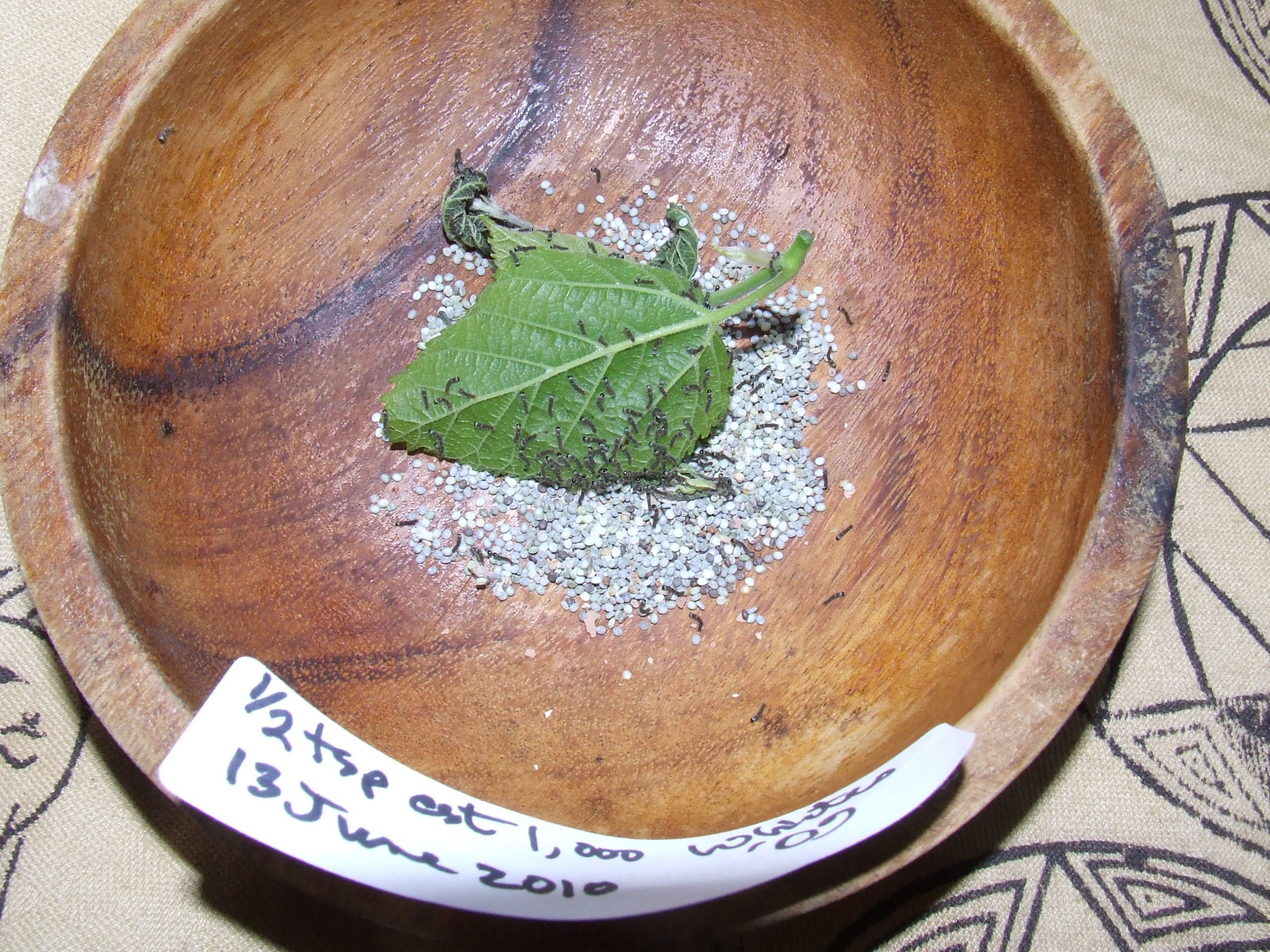 Your silkworm eggs are in the canister. There are about 200, or a few more. Please open the canister right away, and empty the eggs out into a small dish or plate. I like to use a wooden salad bowl, as wood is self-cleaning and also absorbs moisture.
